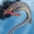 В эпоху мелового периода воды океана населял еще один вид морских ящеров – тилозавры. Это были крупные хищники, спереди имевшие значительный ростр, который, возможно, использовали как таран при охоте. Охотились тилозавры в темноте в глубинах океана. Глубоководным обитателям не было от них спасения.